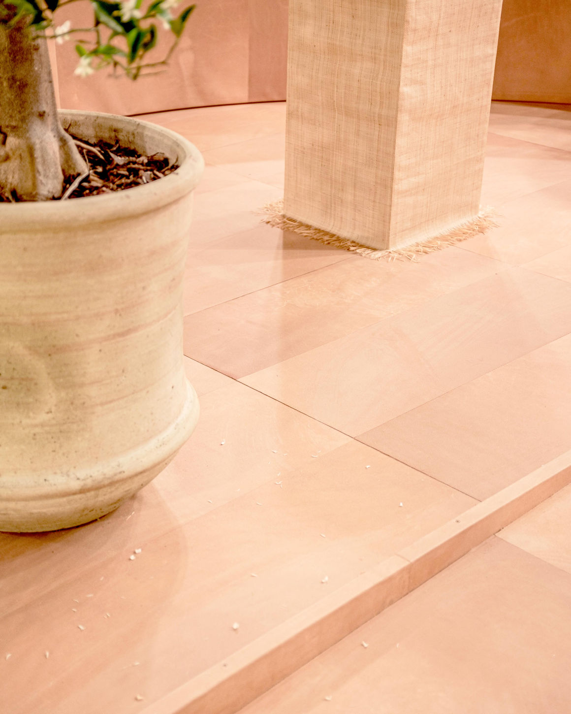 Spatial design and visual identity for In The Making Atto 5, presented by Lineapelle and curated by Barbara Ricchi for Giorgio Linea. The stand was entirely clad in vegetable-tanned leather, creating a calm, natural atmosphere that suggested walking on terracotta tiles while remaining soft and warm underfoot. Details in raffia and ceramics, paired with the scent of mandarin, offered a fully sensory experience celebrating craftsmanship, a true journey for the senses. For the visuals, the approach emphasized materials, both as tools and as raw elements, placing them at the heart of the narrative.